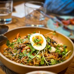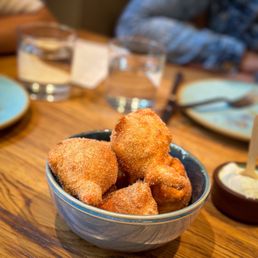 Awesome atmosphere, unique menu options, and delicious cocktails! A few things to note if its your first time: its a smallish sharing plate style restaurant that emphasizes groups trying multiple dishes together. Not quite family-style in the sense that each plate isn't large but also dishes aren't necessarily meant to be for an individual. My personal recommendation is to do about 2-3 dishes per person at your table give and take! This takes it a bit on the pricier side of things, but its worth the experience. Lots of dishes pictured here, but I was a particularly big fan of the whole branzino fish which was seasoned in what I would call southeast-asian inspired fashion, and the goat curry (though I would only recommend this to fans of gamier meats, even though the restaurant does a great job of playing to the strengths of goat).